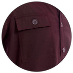 • Bolsillos en pecho: Dos bolsillos frontales tipo parche con solapa y botón, funcionales y de inspiración utilitaria.