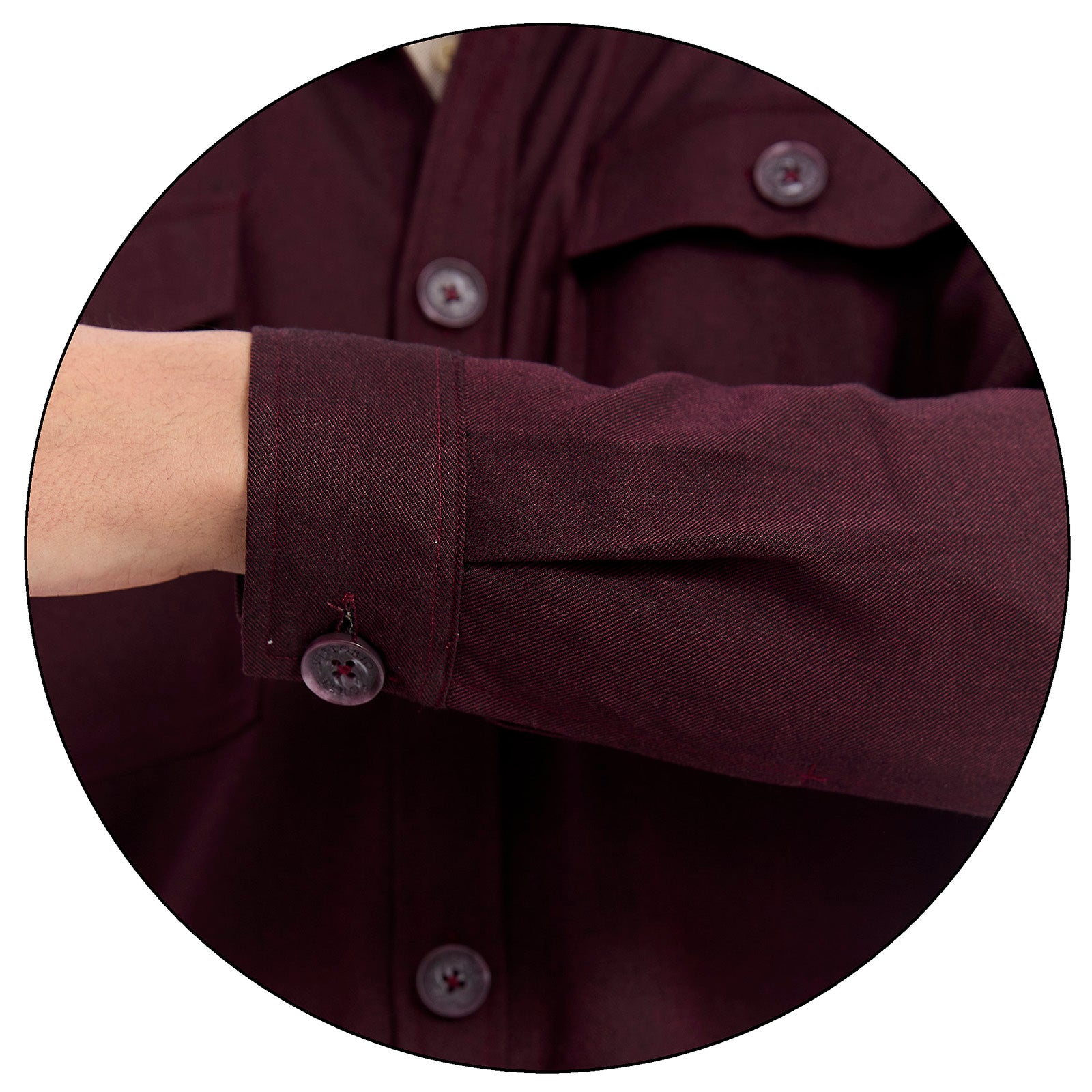 • Mangas: Largas con puño recto abotonado para mejor ajuste.