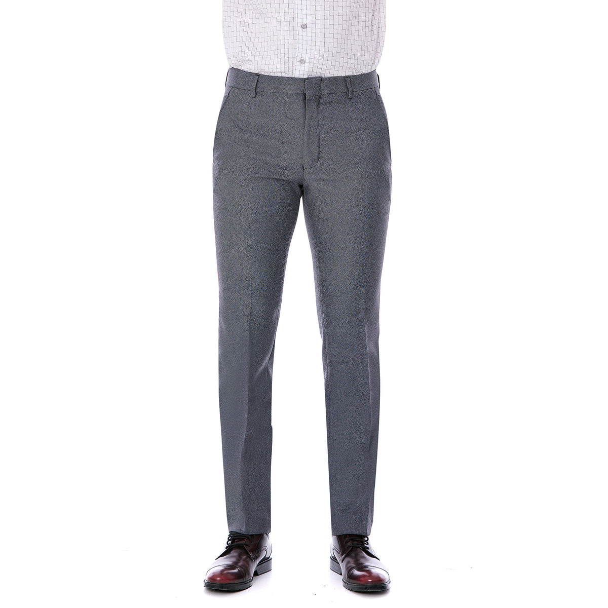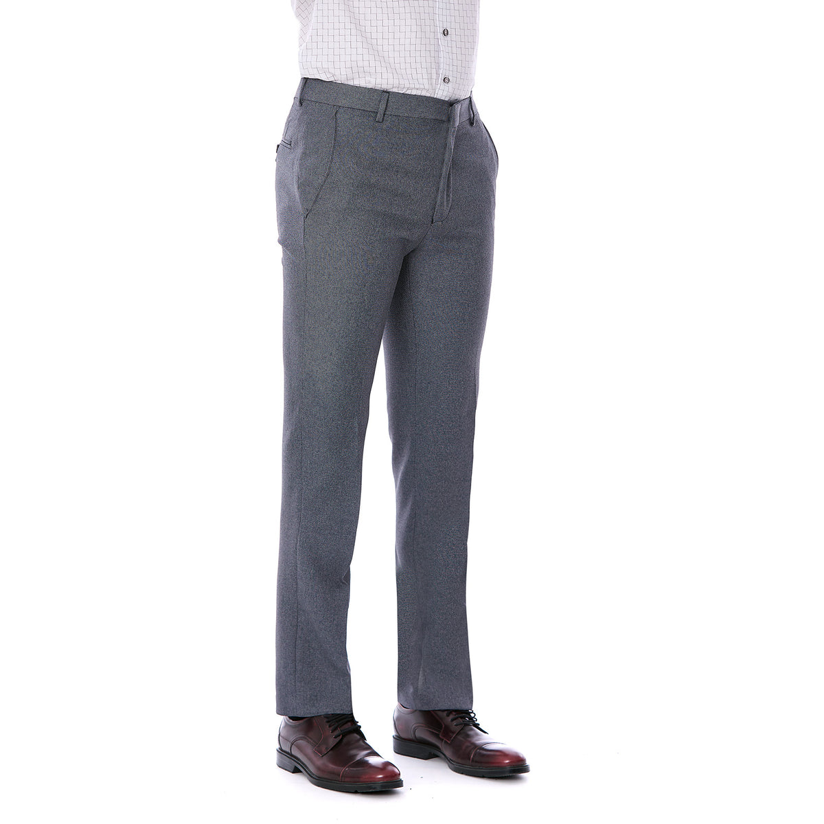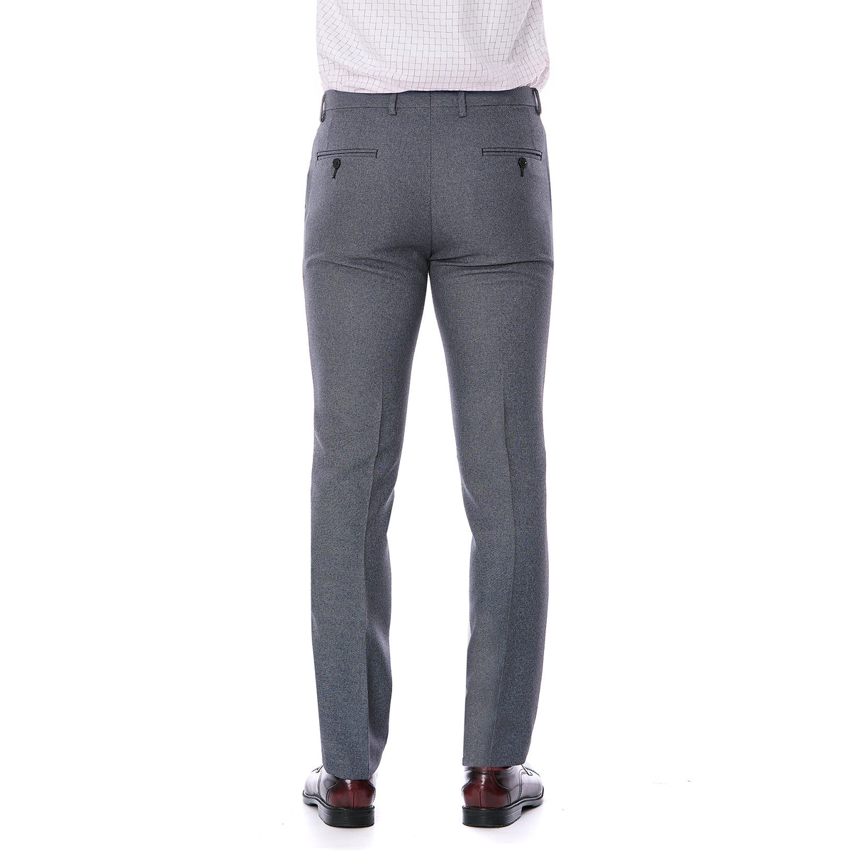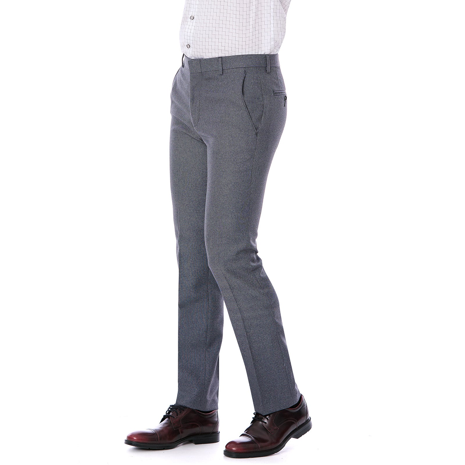 Luce un estilo sofisticado con el pantalón separates slim fit gris de Vittorio Forti. Confeccionado en poliéster liso de alta calidad, ofrece comodidad y durabilidad. Sus bolsas delanteras inclinadas y bolsillos traseros con ojal y botón aportan funcionalidad y elegancia, convirtiéndolo en la prenda perfecta para oficina, reuniones de negocios o eventos formales dentro de un look business casual contemporáneo.