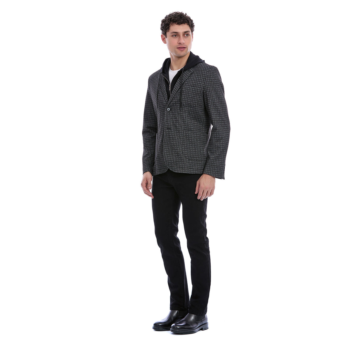 Renueva tu estilo urbano con este saco casual Slim Fit para caballero, una prenda que fusiona la elegancia del blazer con la comodidad de una sudadera. Su diseño híbrido con capucha integrada aporta un aire moderno, juvenil y versátil, perfecto para outfits smart casual o para elevar un look cotidiano con un toque distintivo.