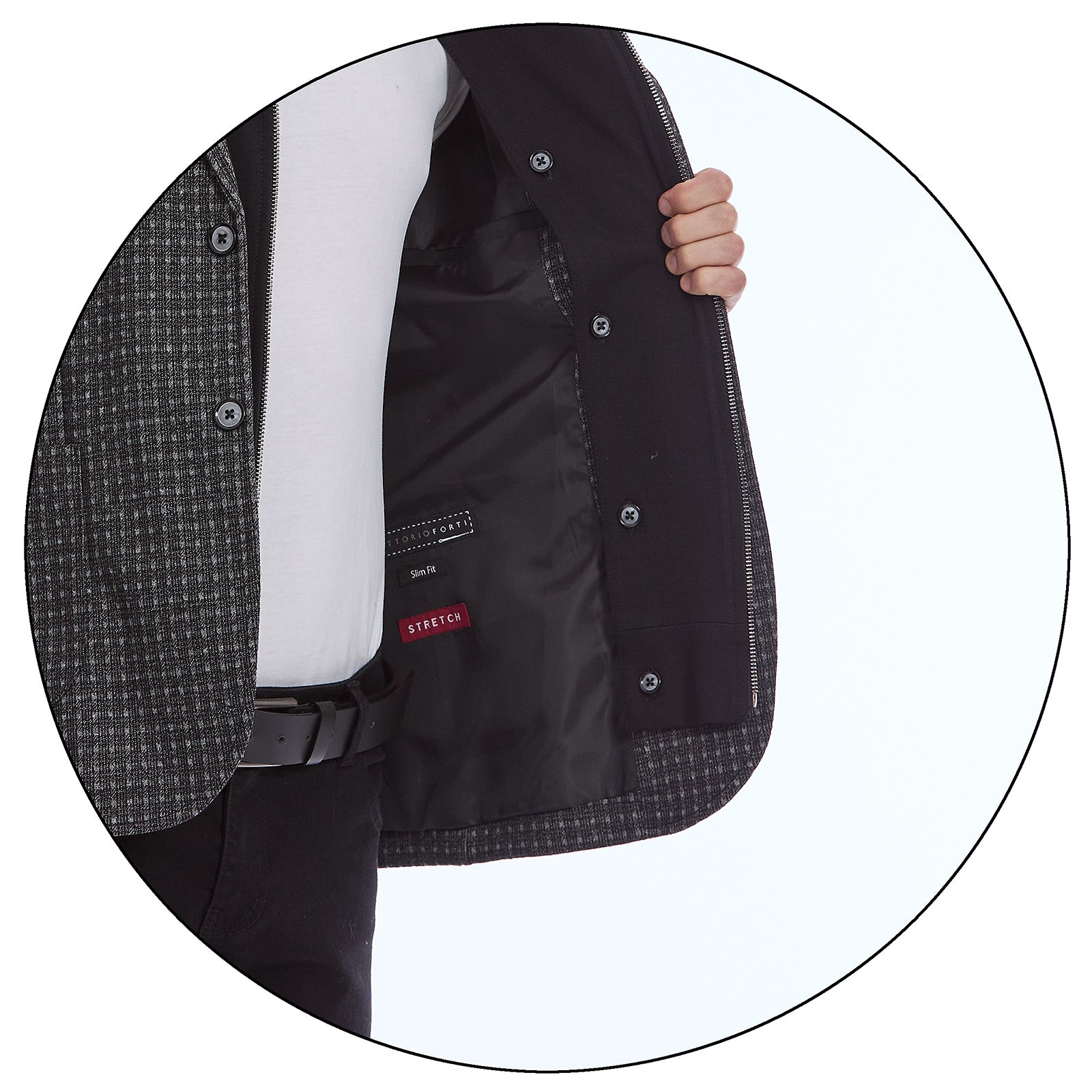 “Un saco moderno, versátil y dinámico que une comodidad urbana con la elegancia casual que distingue al hombre Vittorio Forti.”