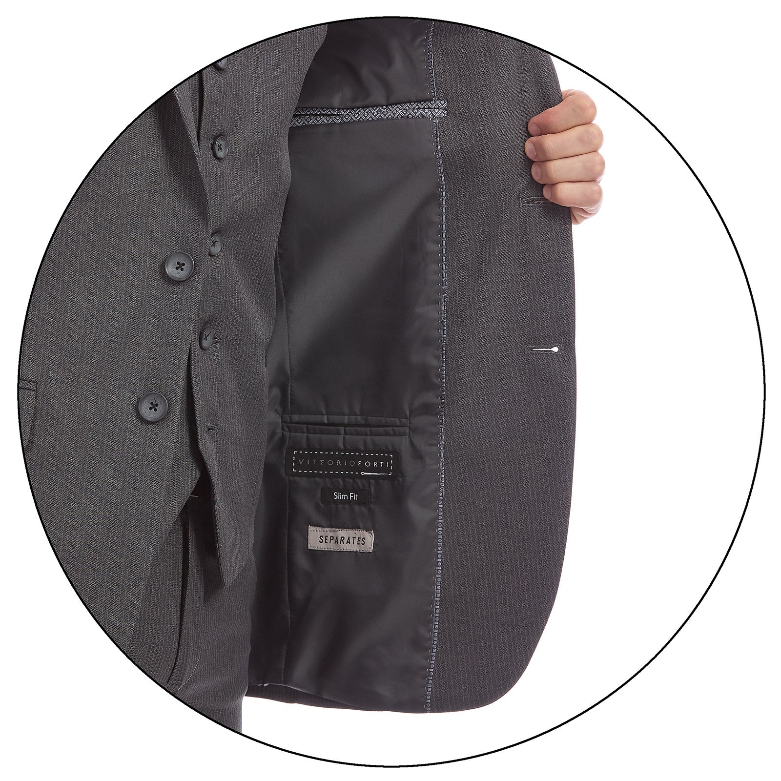 Proyecta una elegancia contemporánea con este saco Separates para caballero Slim Fit, una prenda versátil que combina estilo y funcionalidad. Confeccionado en tejido de poliéster a rayas, ofrece un acabado sofisticado y una textura ligera que se adapta con facilidad al movimiento. Su diseño de líneas limpias y corte entallado define la silueta con precisión, ideal para quienes buscan un look business moderno o semiformal con el sello distintivo de Vittorio Forti.