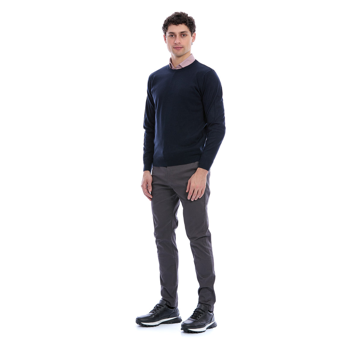 Refuerza tu estilo con este suéter Slim Fit de cuello redondo, una prenda esencial para el guardarropa masculino por su elegancia discreta y versatilidad absoluta. Su textura ligera y suave lo convierte en la capa perfecta para combinar sobre camisas o usar por sí solo, logrando un look moderno, limpio y sofisticado.