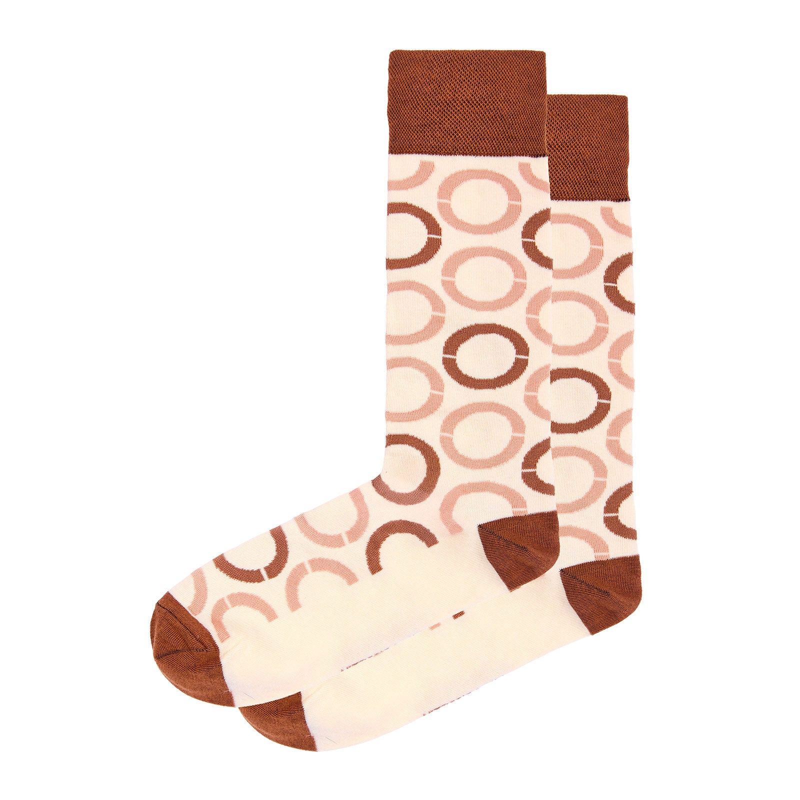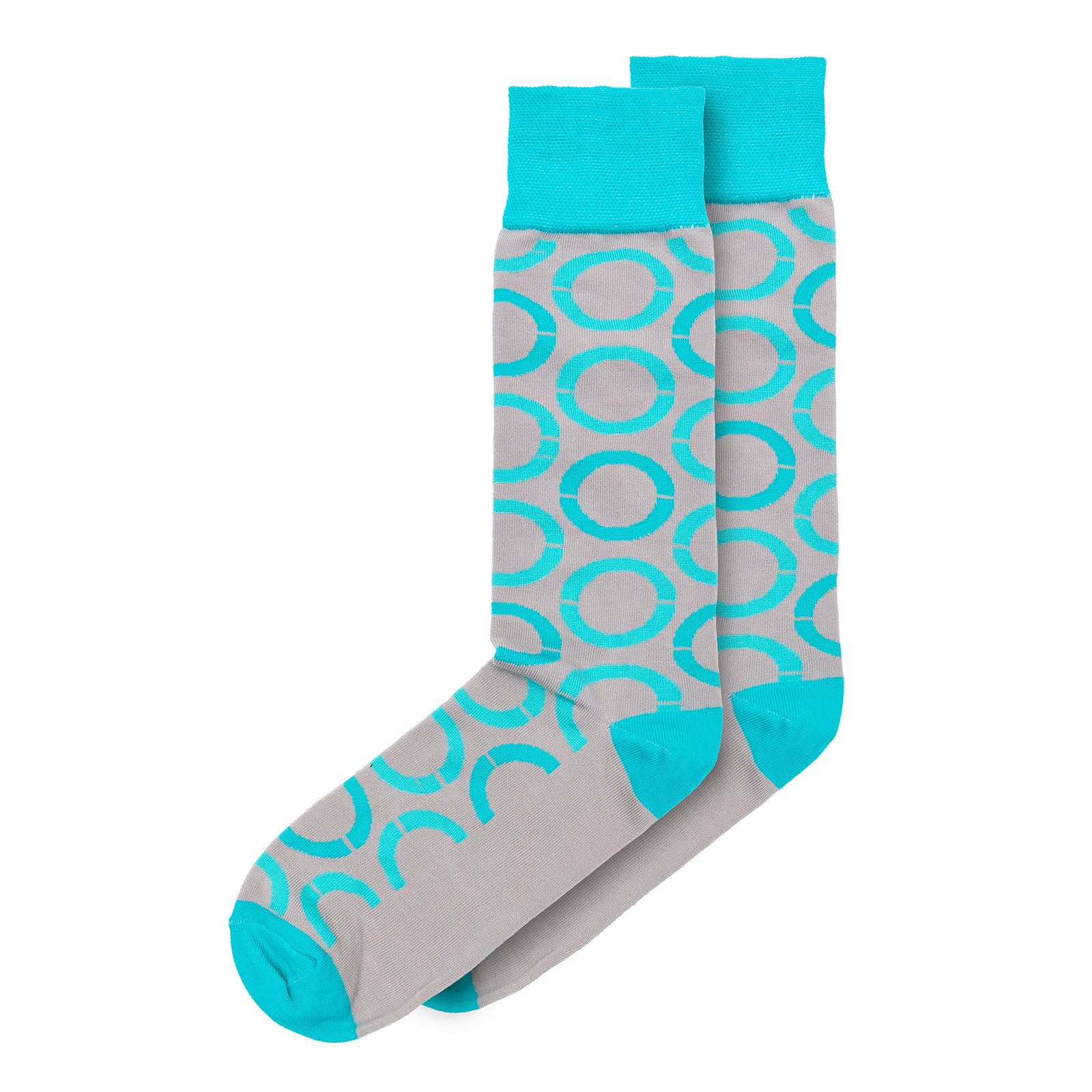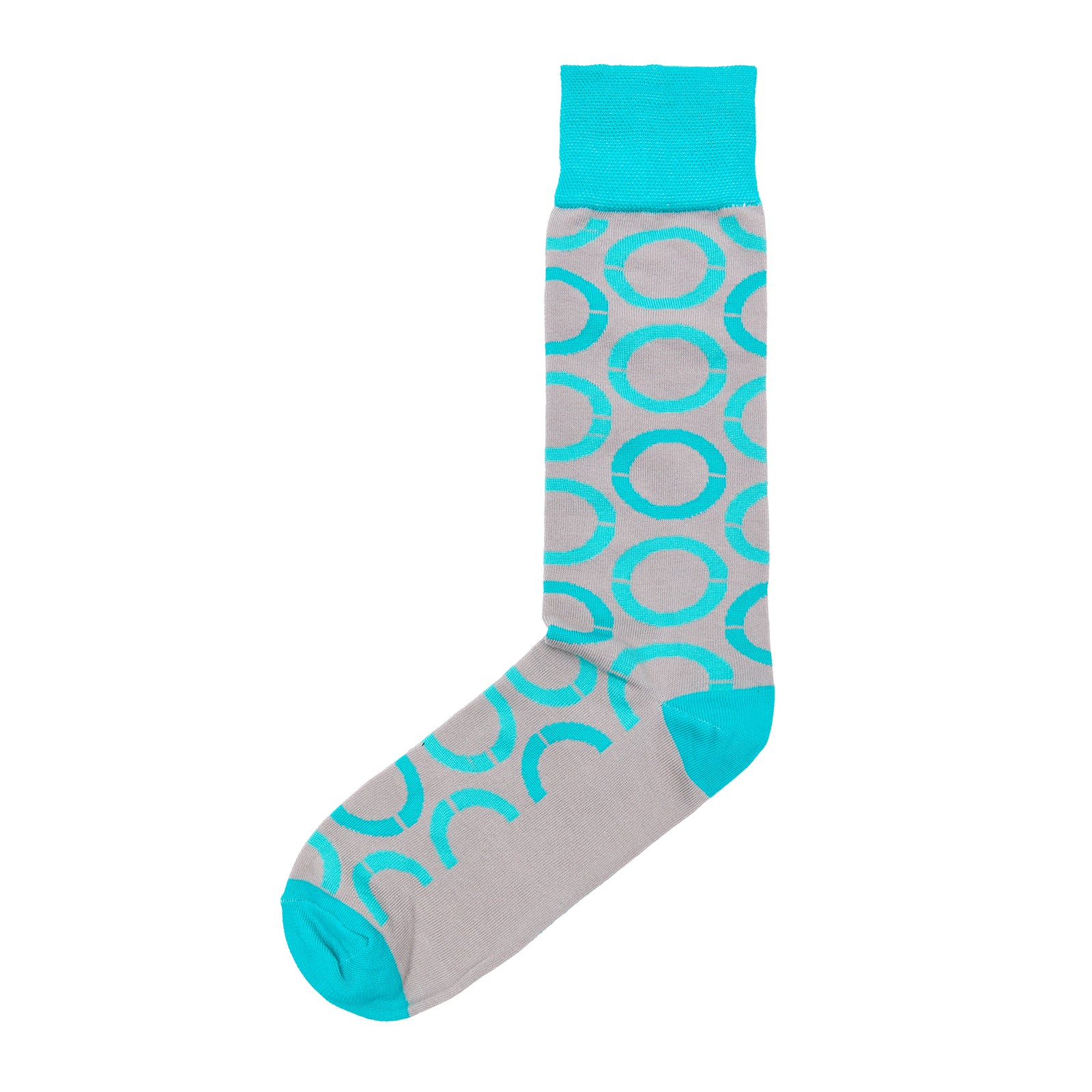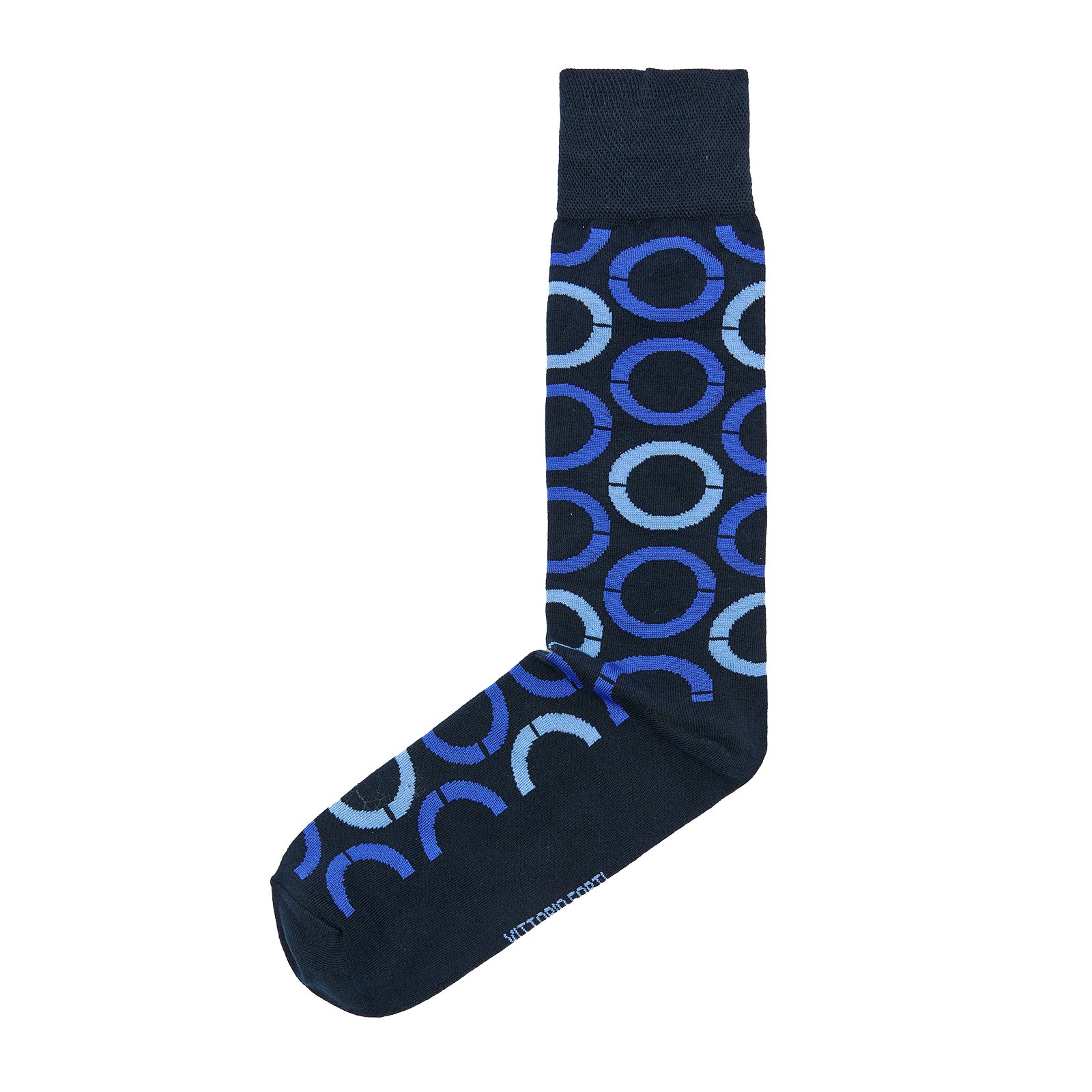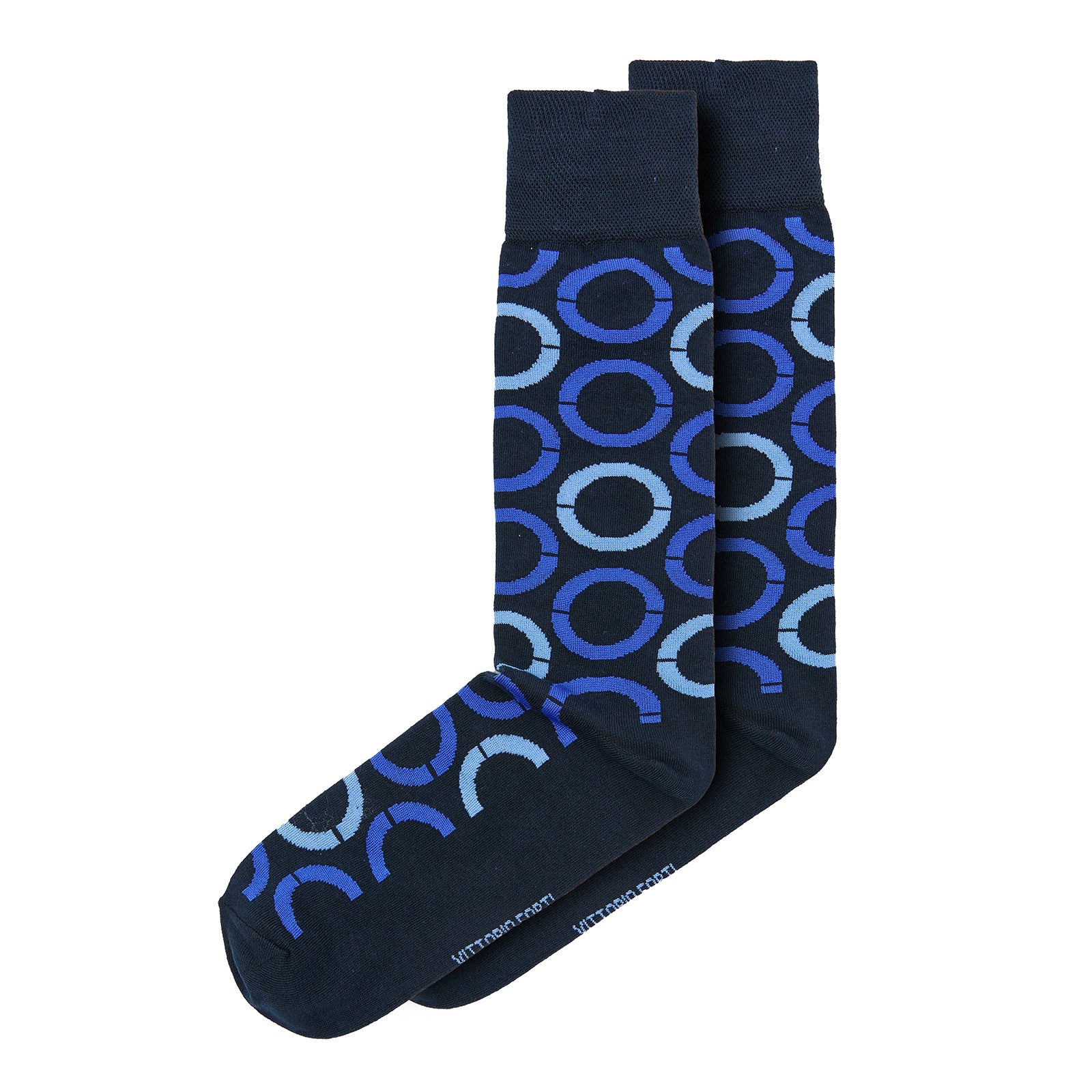 Calcetín para caballero, marca Vittorio Forti, confeccionado en tejido Jacquard de fantasía con diseño de círculos decorativos, que aportan un toque moderno y distintivo al estilo diario.