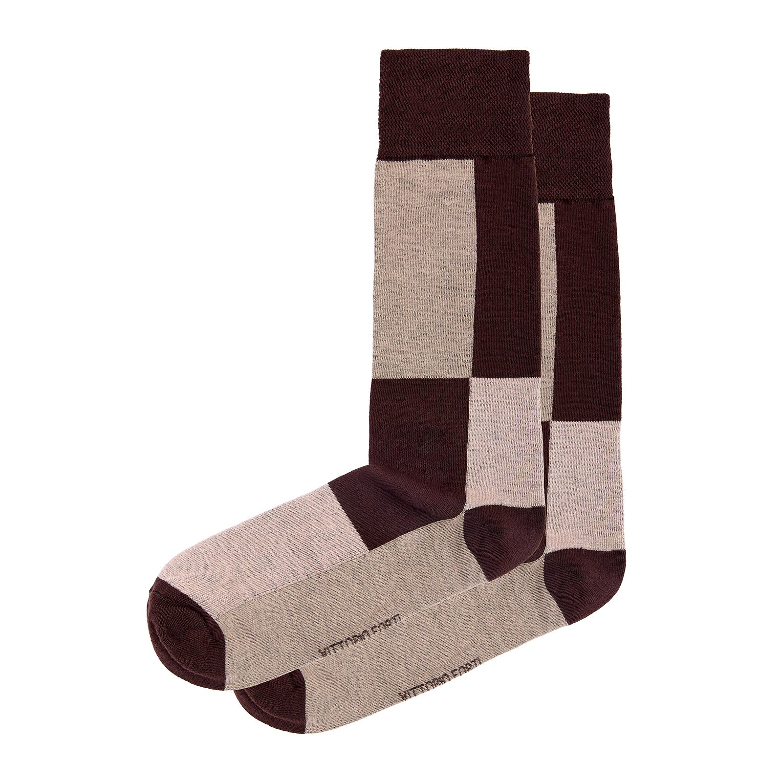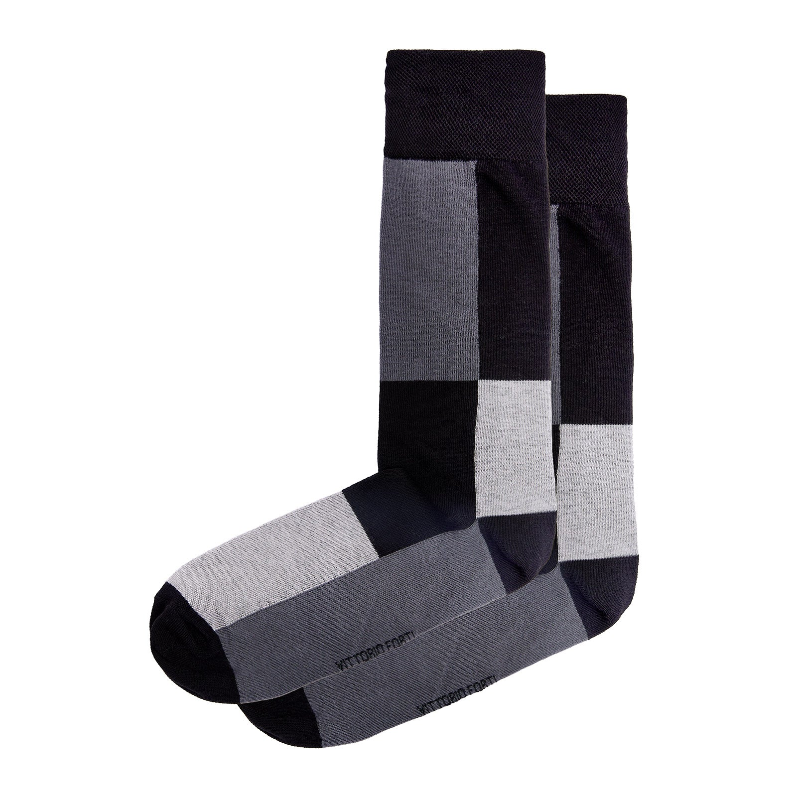 Calcetín para caballero, marca Vittorio Forti, confeccionado en tejido Jacquard de fantasía con diseño de bloque, que aportan un toque moderno y distintivo al estilo diario.