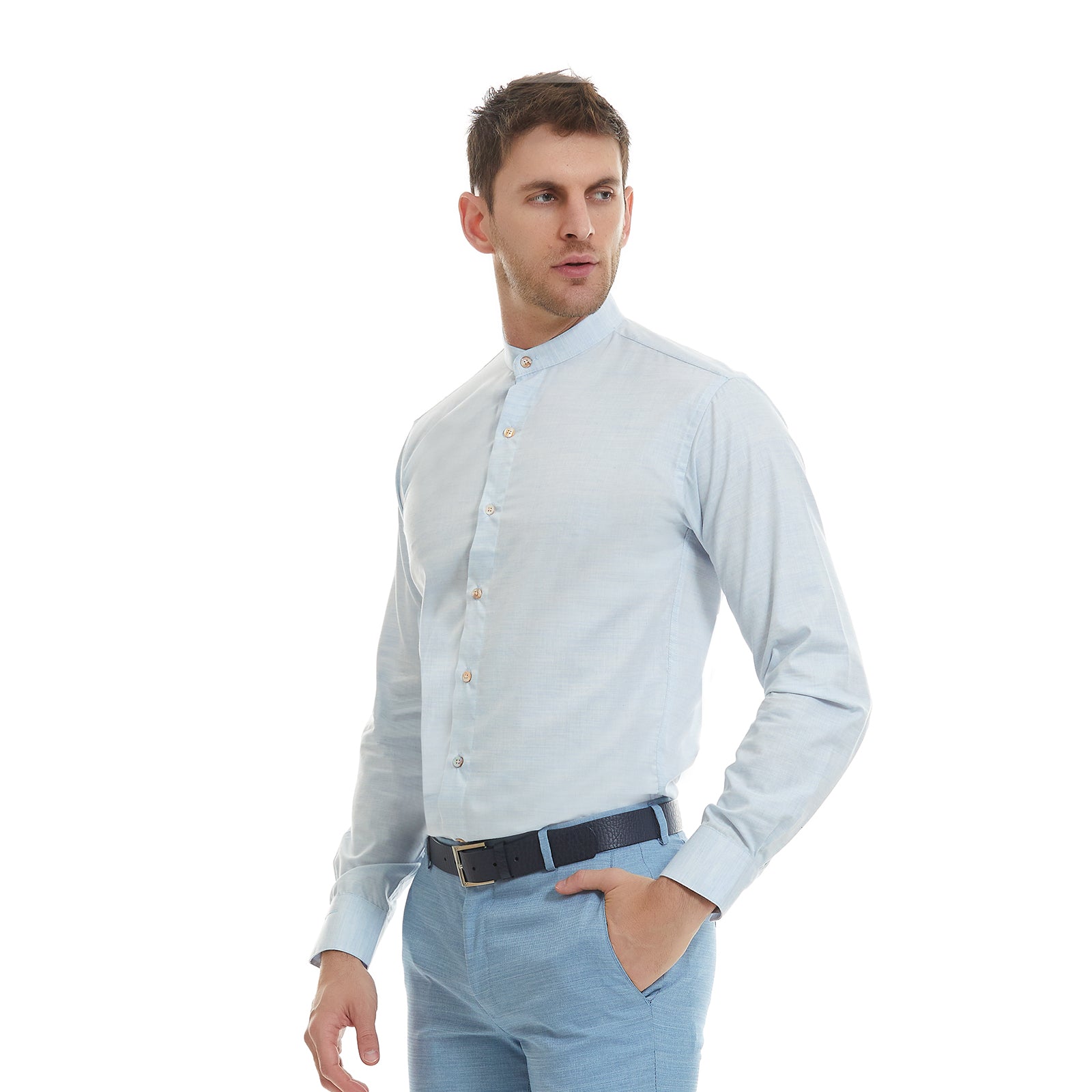 Cuello Mao: Diseño sin solapas que proyecta una imagen moderna y pulida.