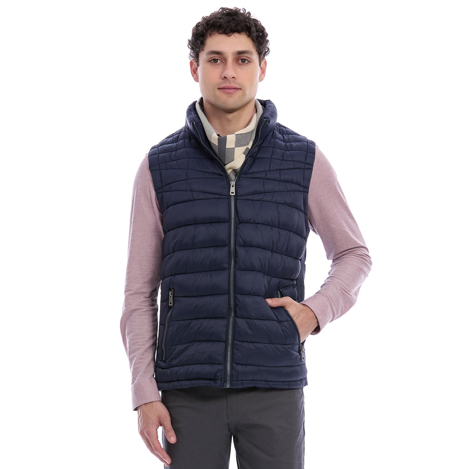 Refuerza tu estilo casual con este chaleco acolchado para caballero, una prenda ligera, moderna y versátil ideal para complementar cualquier look. Su diseño capitonado y cuello alto brindan confort térmico sin perder movilidad, perfecto para combinar con playeras tipo polo o camisas casuales. Una pieza indispensable para el hombre Vittorio Forti que busca comodidad, funcionalidad y un toque contemporáneo en su día a día.