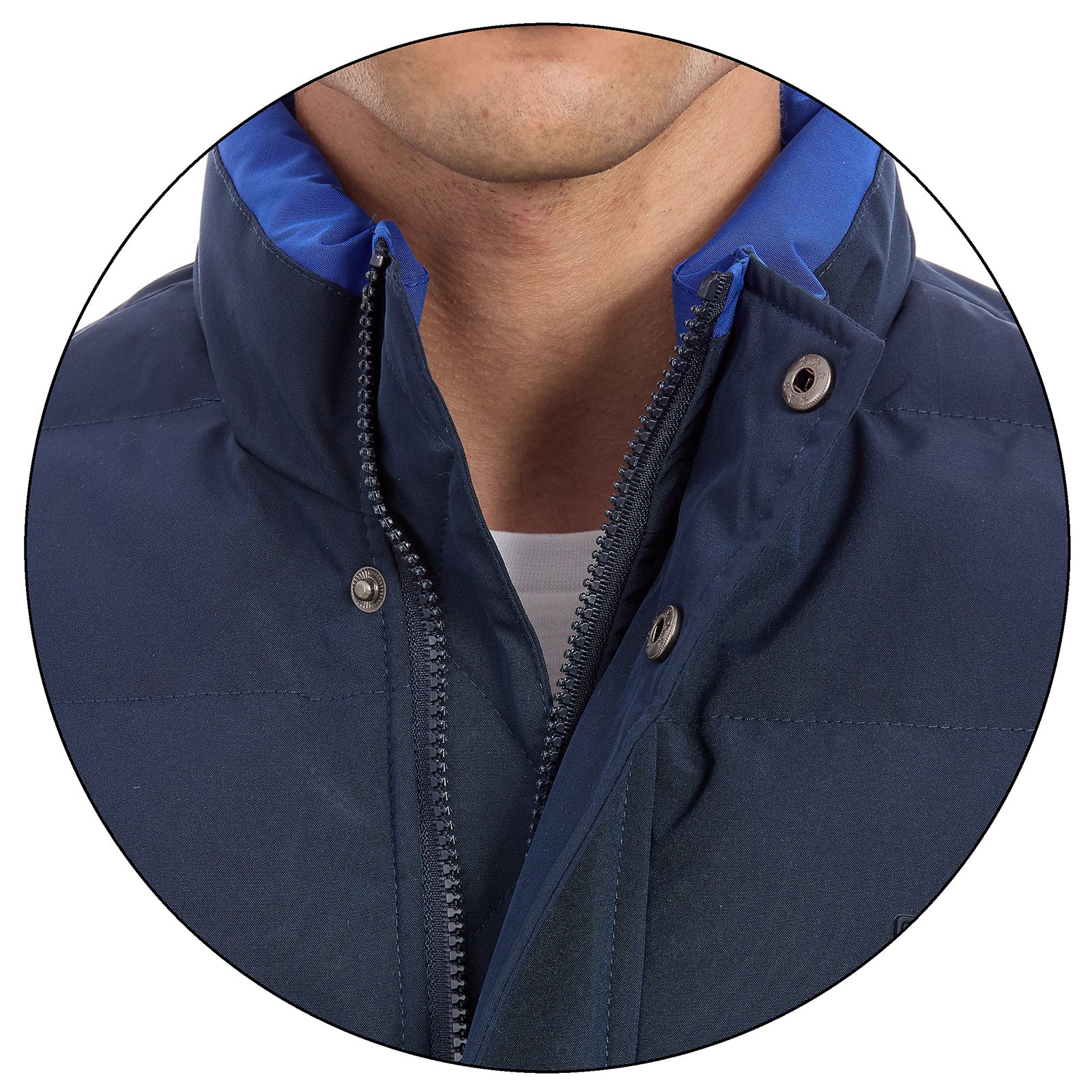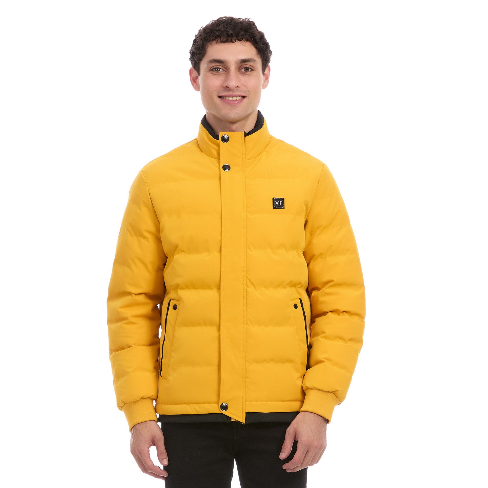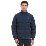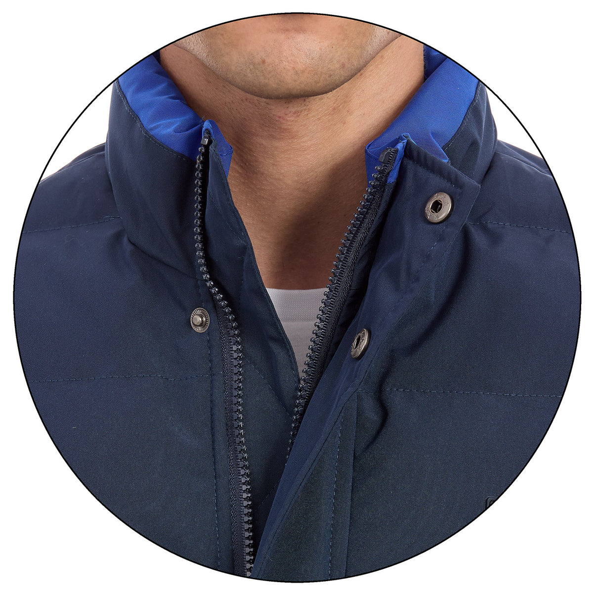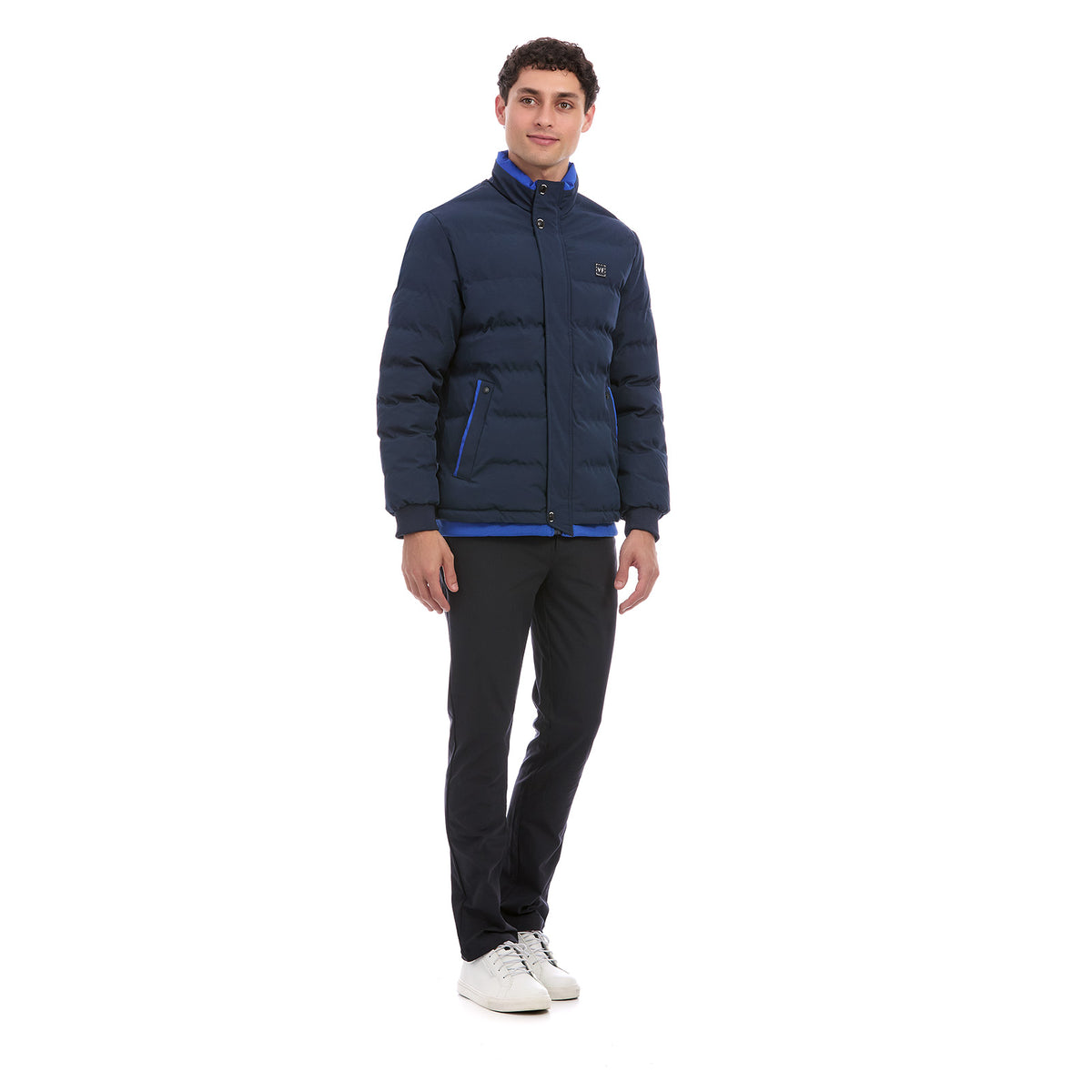 Eleva tu estilo invernal con esta chamarra acolchada para caballero, diseñada para brindar calidez, confort y un look moderno. Su cuello alto reforzado, junto con el cierre frontal de zipper metálico y la solapa exterior con broches a presión, ofrece mayor protección contra el viento y el frío, además de un acabado limpio y funcional.