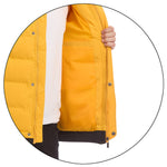 El acolchado térmico de alta densidad mantiene la temperatura corporal, mientras que los bolsillos laterales con broche añaden practicidad al diseño. Su color vibrante y su estructura ligera la convierten en una prenda esencial para tus días casuales y urbanos.