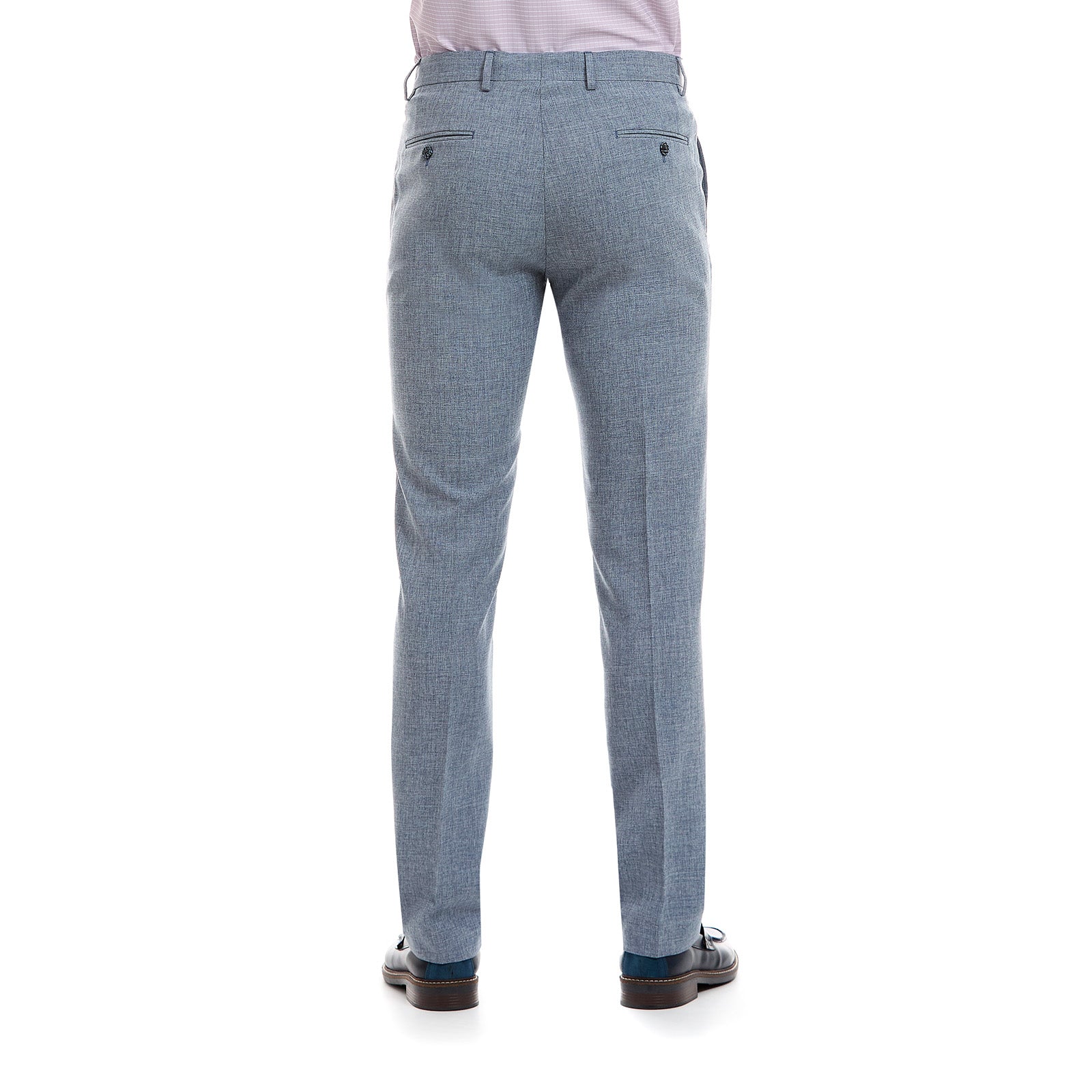 Bolsillos traseros: Dos de doble vivo con ojal y botón, para un toque sofisticado.