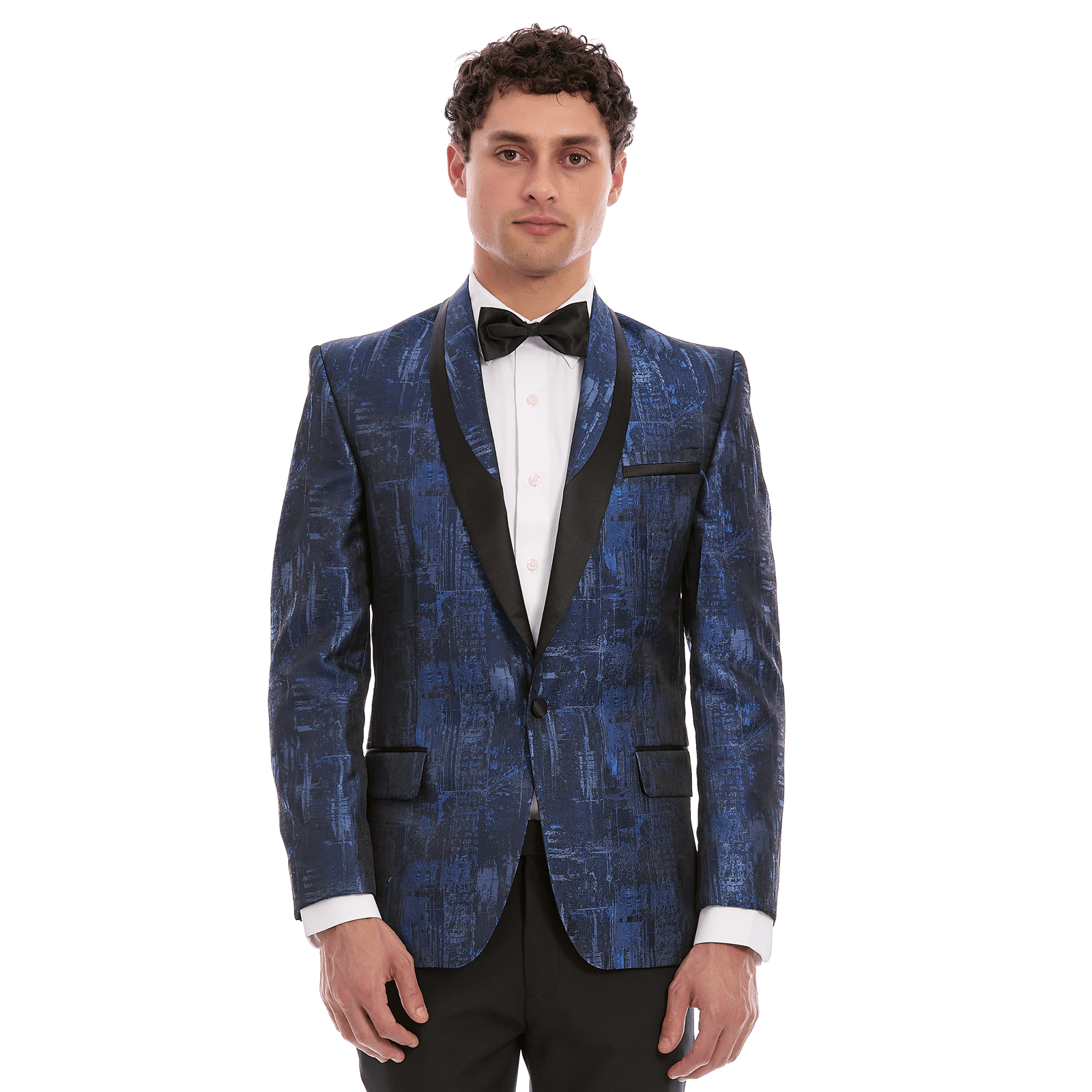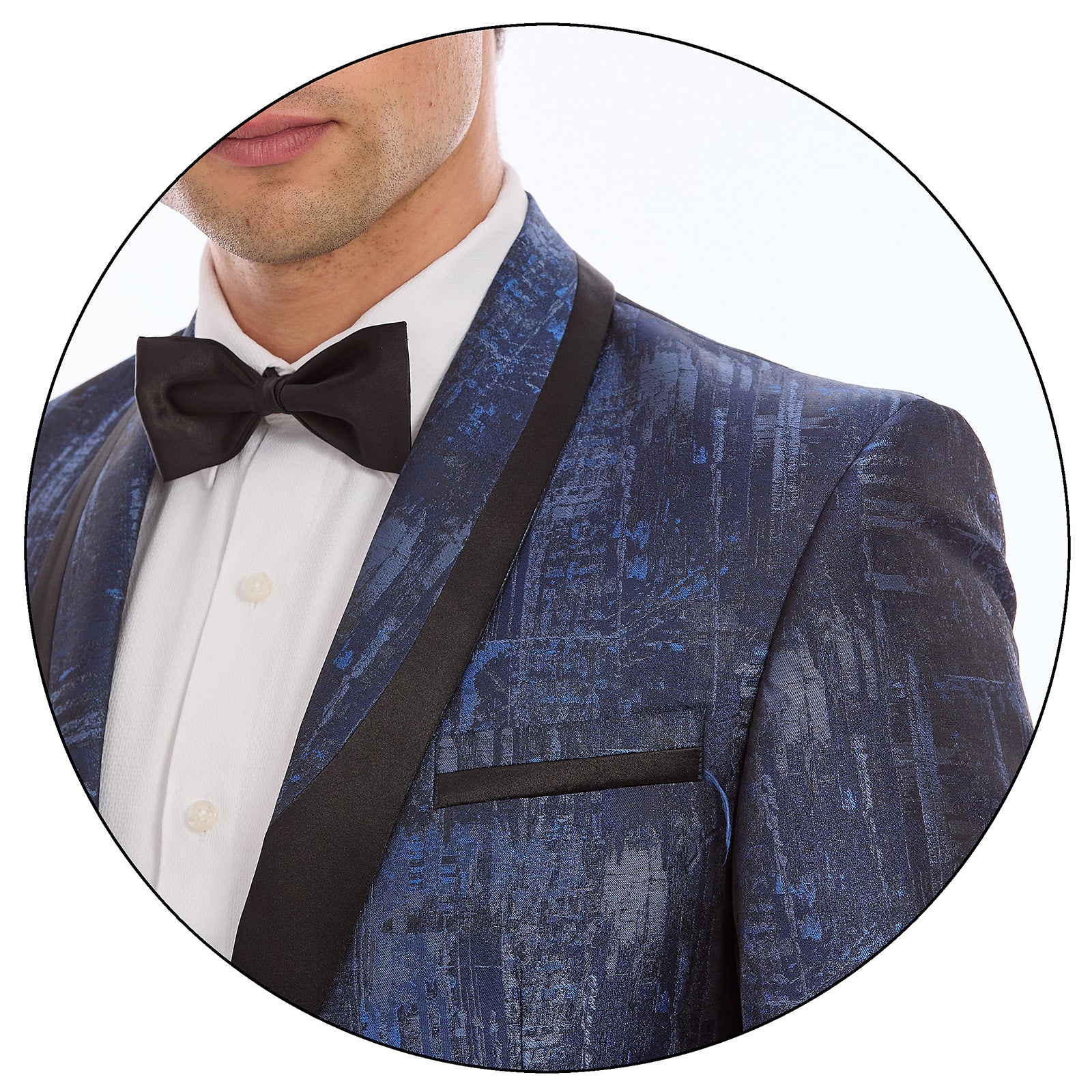Haz una entrada inolvidable con este saco de ceremonia Slim Fit para caballero en tono azul con textura elegante, una prenda diseñada para elevar cualquier look de gala. Su solapa de pico en satín negro aporta un contraste sofisticado que refuerza el estilo distinguido y moderno del hombre Vittorio Forti.