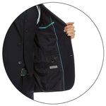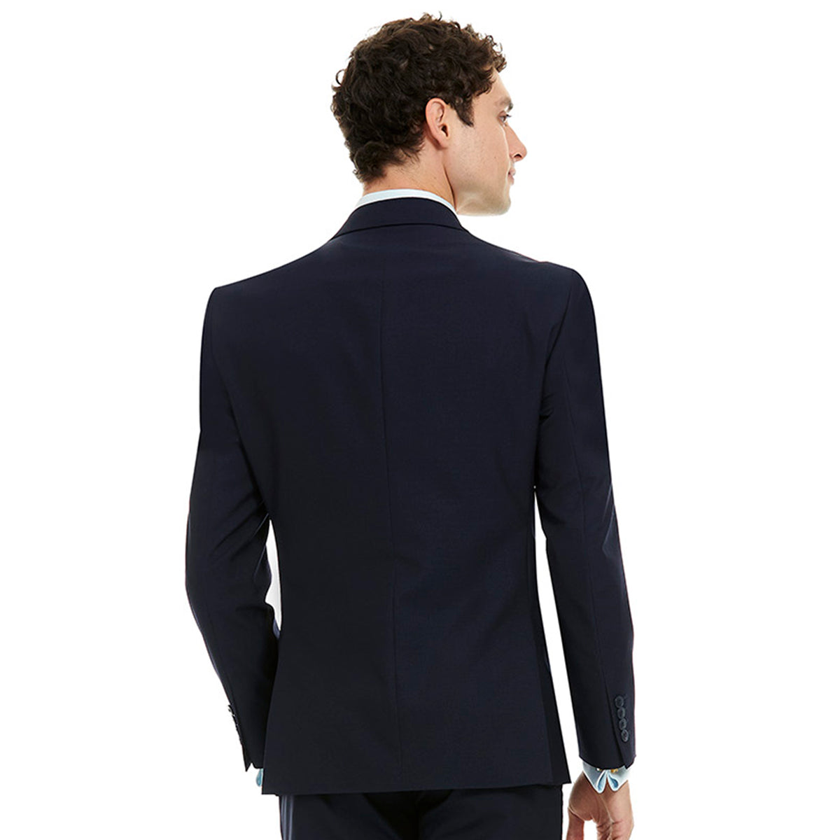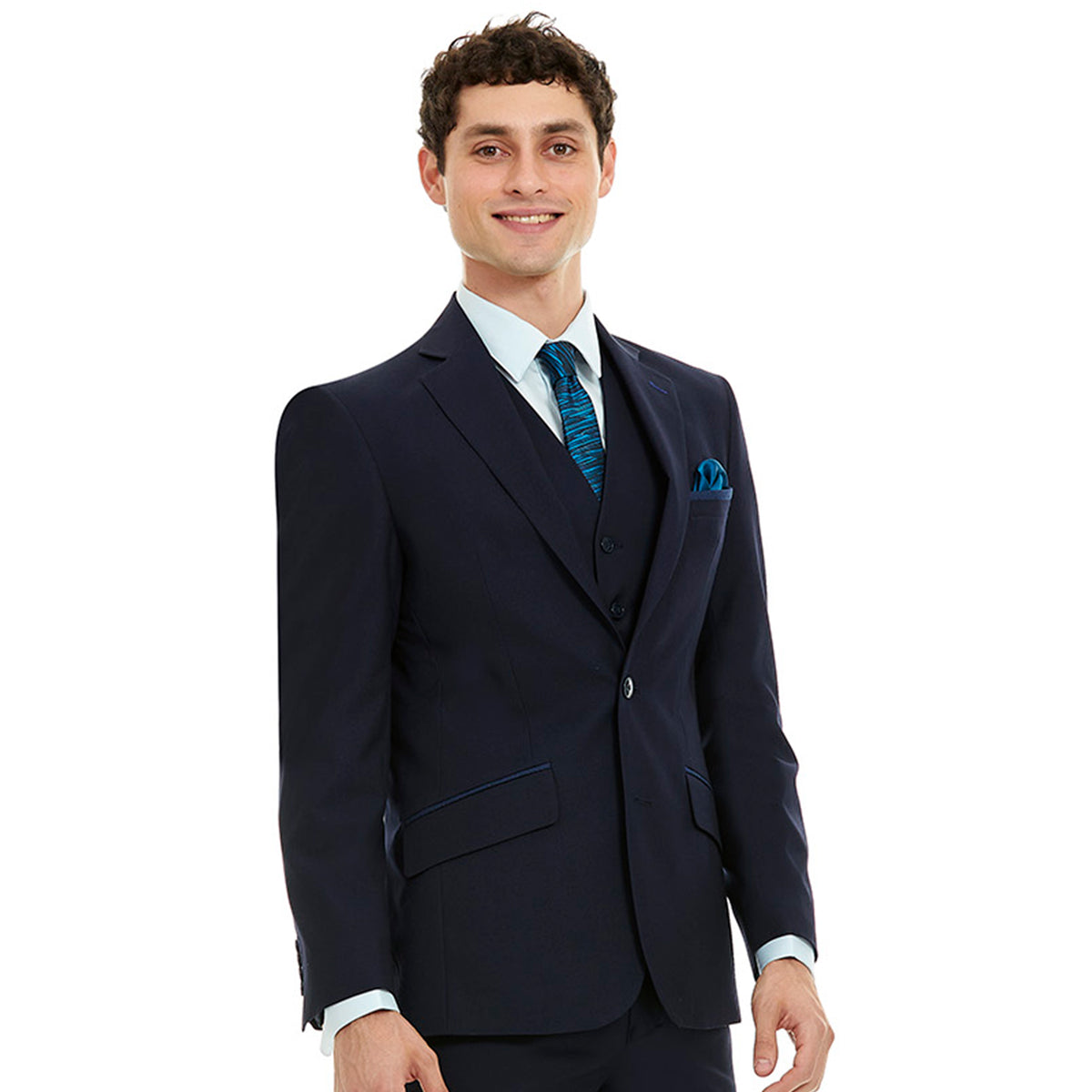 Proyecta una elegancia contemporánea con este saco Separates para caballero, diseñado para quienes buscan estilo, confort y versatilidad en una sola prenda. Su corte Slim Fit estiliza la figura, mientras que el tejido falso liso en tono azul marino aporta sobriedad y distinción. La aletilla superior con contraste añade un detalle moderno que eleva su diseño, ideal para un look business casual o semiformal.