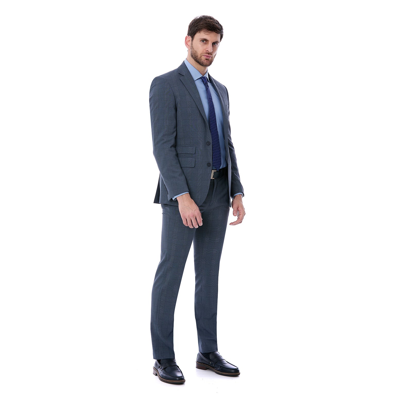 Proyecta confianza y estilo con este traje Slim Fit para caballero, confeccionado en tejido de poliéster azul a cuadros de alta calidad que garantiza comodidad, durabilidad y una caída impecable. Su solapa de escuadra, corte moderno y los detalles de sastrería cuidadosamente elaborados realzan la silueta masculina, brindando una imagen elegante y actual. Ideal para la oficina, reuniones de negocios o eventos especiales, este traje combina sofisticación, modernidad y distinción, reflejando el espíritu contemporáneo del hombre Vittorio Forti.