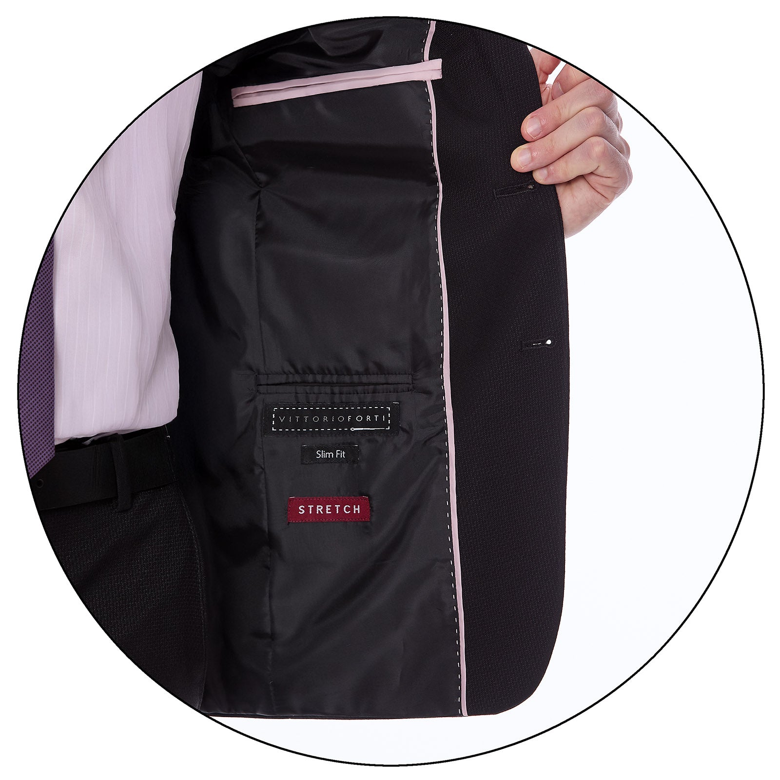 Destaca con el traje slim fit negro liso de Vittorio Forti. Confeccionado en poliviscosa de alta calidad, combina comodidad y durabilidad con un corte moderno. Su solapa de escuadra, bolsillos de doble vivo con carteras inclinadas y detalles de sastrería proyectan elegancia, ideal para oficina, reuniones de negocios o eventos formales. Un traje sofisticado que refleja estilo contemporáneo y distinción clásica.